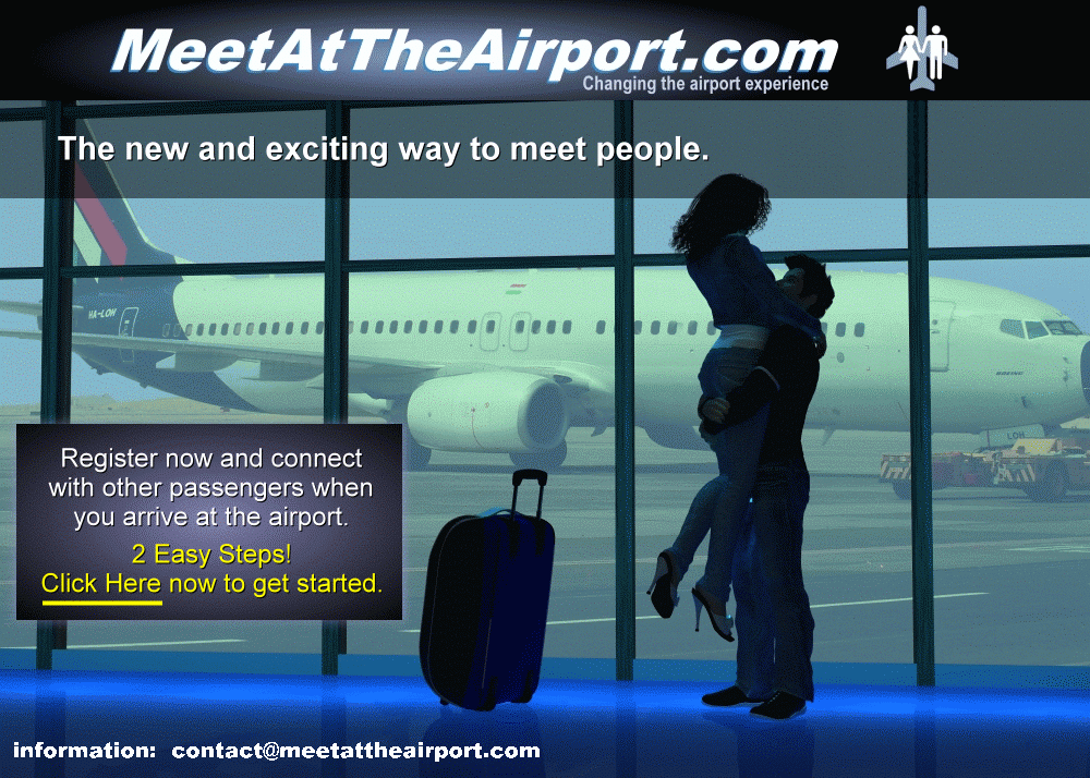 Meeting someone new at the airport is fun and exciting. We've all thought about it while waiting for our flight. It's a bit of adventure that adds spice to your everyday life. MeetAtTheAirport.com can now make a fantasy a reality. Find fellow travelers that are looking for that added sense of excitement that you only get when meeting someone new. Share a drink with an attractive stranger in the totally safe environment of a public airport. Perhaps, share a brunch or romantic dinner while waiting for your flight and explore the enticing possibilities that are presented to you. Romance, friendship, travel companion, networking... The possibilities are endless. If you're tired of reading a magazine while waiting for your flight, don't hesitate, register now.